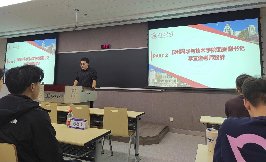 大会第一阶段在全体与会人员齐唱国歌中拉开序幕。随后,仪器学院团委副书记李宣逸致辞。他强调,研究生会要始终牢记服务宗旨,团结引领广大同学坚定理想信念,锤炼过硬本领,勇担时代重任。他希望全体代表认真履行职责,积极建言献策,以高度的责任感和使命感完成大会各项议程,为学院发展贡献青春智慧和力量。