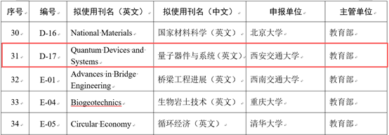 近日,由我院牵头创办的《量子器件与系统(英文)》(Quantum Devices and Systems,简称QDS),经过项目申报、资格审查、答辩评审等环节,成功入选中国科技期刊卓越行动计划二期高起点新刊,标志着我国在量子科技领域拥有了面向全球的学术交流平台,填补了国内该领域高水平英文期刊的空白,为提升我国在量子科技国际话语权迈出了关键一步。该期刊由成人直播